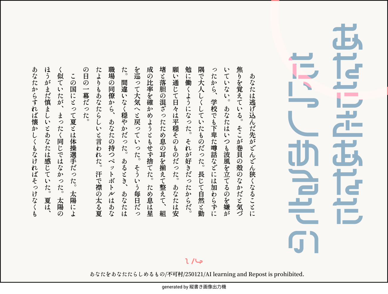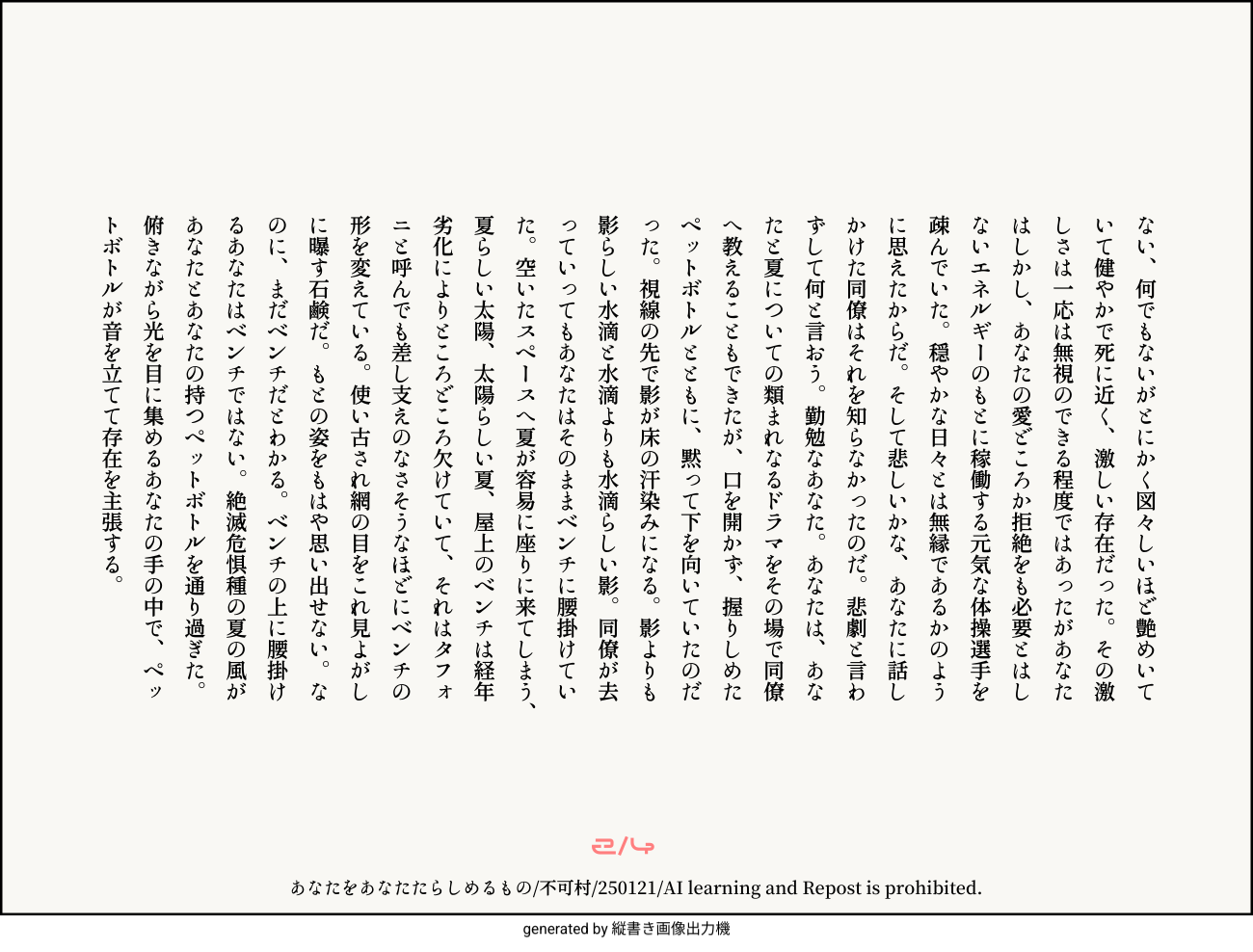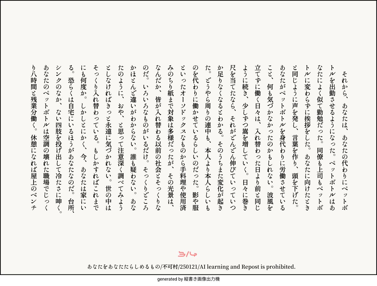 あなたをあなたたらしめるもの/不可村/250121/AI learning and Repost is prohibited.